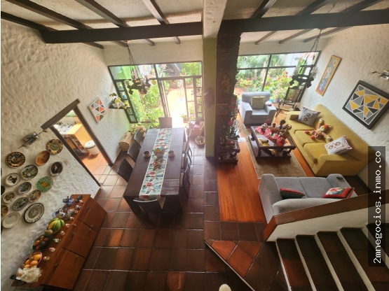 PRIMER NIVEL: En la entrada se encuentra un parquedero cubierto dando accsesoa a un hall amplio de recibimiento con un estudio o biblioteca privado y baño social. Comedor y sala con chimenea de techos de doble altura, cocina cerrada y un delicioso comedor auxiliar con luz natural rodeado de la zona de lavanderia. En en fondo cuarto y baño de servicio. En el comedor se encuentra una salida a un hermoso jardin frutal, para disfrutar en cualquier momento del día